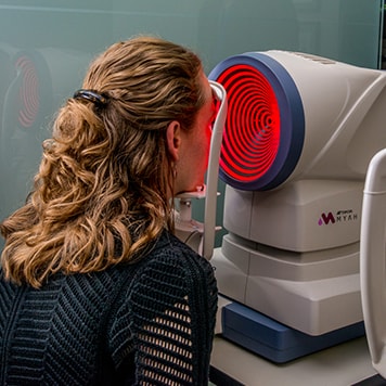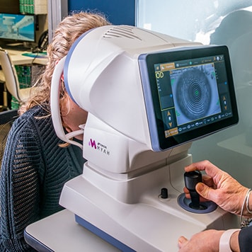 We offer in-depth diagnostics to accurately assess and track your child’s myopia through the Topcon MYAH system, a multi-function device that measures axial length, keratometry, and meibography, along with other tools: